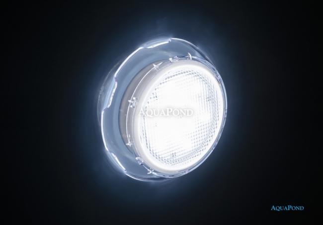 Lampa wykonana z przezroczystego poliwęglanu, przeznaczona również do basenów z elementami ze stali nierdzewnej.