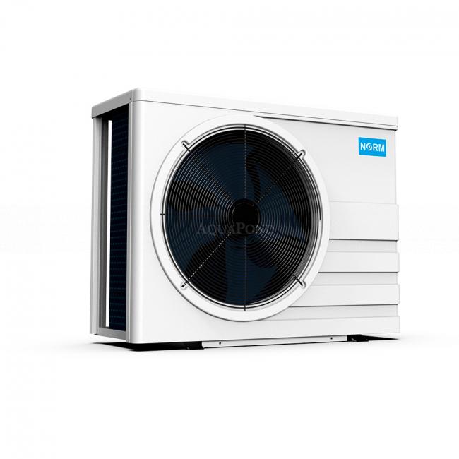 Pompa ciepła NORM EVO o mocy 12 kW przeznaczona jest do ogrzewania mniejszych basenów prywatnych o objętości do 50 m3 . Podczas rozruchu NORM EVO minimalizuje prąd wejściowy przy włączaniu do 0(A) i powoli go zwiększa do wartości prądu znamionowego (ok. 2 min) - zapobiega to tak silnemu i gwałtownemu wzrostowi napięcia i tym samym lepiej chroni domową sieć elektryczną. Zasada odzysku ciepła w pompie ciepła typu powietrze/woda polega na przeniesieniu energii cieplnej z powietrza do przechłodzonego czynnika chłodniczego wewnątrz pompy ciepła. W wyniku sprężania czynnika chłodniczego za pomocą sprężarki wytwarzane jest ciepło, które wykorzystujemy do podgrzewania wody w basenie. Pompa ciepła wyposażona jest w technologię inwertera krokowego. Sterowanie poprzez aplikację.