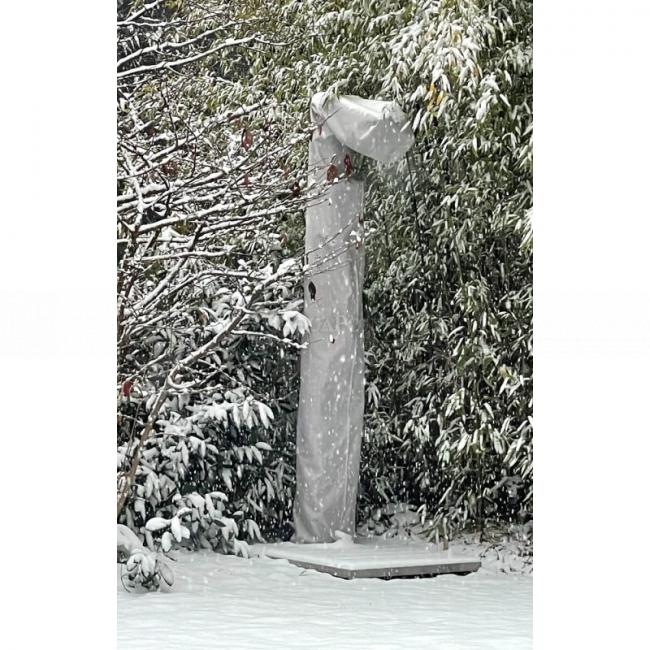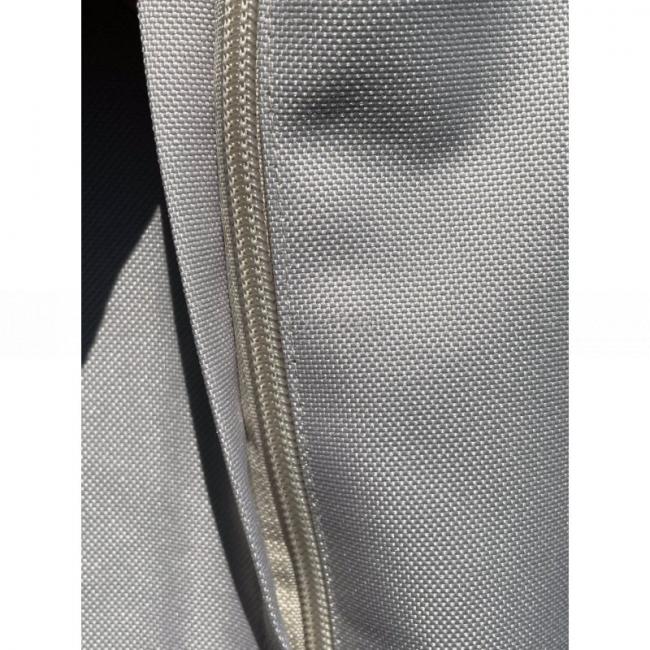Pokrowiec wyposażony jest w długi zamek błyskawiczny z boku. W górnej części pokrywy znajduje się otwór na wypadek, gdybyś chciał pozostawić deszczownicę zamontowaną. Neutralny „kaszmirowy” kolor zapobiega nadmiernemu nagrzewaniu się pokrowca na słońcu, a zimą jest bardzo dyskretny.