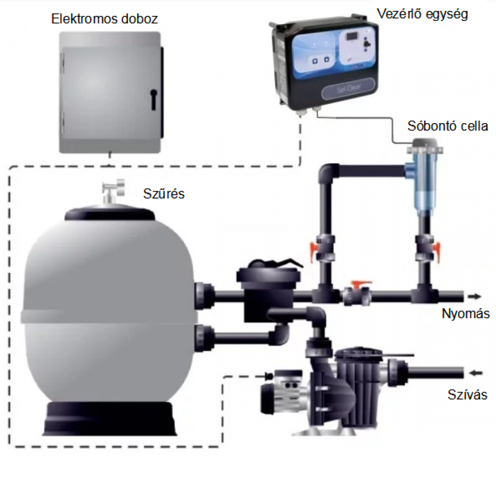 Profesjonalny system elektrolizy soli z elektrodami samoczyszczącymi poprzez odwrócenie polaryzacji. Urządzenie poprzez elektrolizę wytwarza chlor gazowy, który następnie dezynfekuje wodę w basenie. Prosty montaż i użytkowanie, przeznaczony do basenów o pojemności max. 95 m 3 . Urządzenie umożliwia podłączenie czujnika żaluzji basenowej i w przypadku wykrycia poziomu można ograniczyć produkcję chloru.