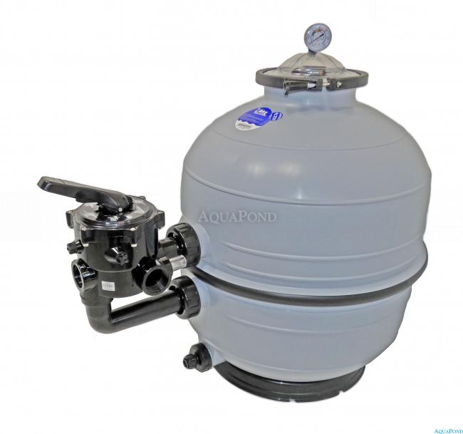 Pojemnik filtra MIDI 500 wykonany jest z formowanego wtryskowo materiału termoplastycznego i spawany przy użyciu najnowocześniejszej technologii spawania. Posiada przezroczystą pokrywę górną, wyposażony jest w manometr, a na boku pojemnika znajduje się zawór sześciodrożny. Filtry piaskowe działają w oparciu o naturalną zasadę filtracji wody. Woda przenika przez warstwę piasku, która zatrzymuje drobne zanieczyszczenia. W ten sposób piasek naturalnie się zapycha i trzeba go wypłukać – do tego właśnie służy zawór sześciodrożny. Przestawiając zawór w pozycję płukania piasku, zmieniamy kierunek przepływu wody i w ten sposób wypłukujemy osadzone zanieczyszczenia do odpadów. Proces ten możemy powtarzać przez cały okres użytkowania piasku, co jest znacznie dłuższym okresem w porównaniu z innymi metodami filtracji.