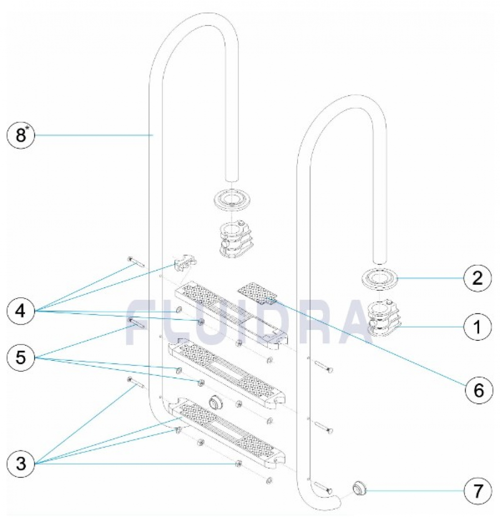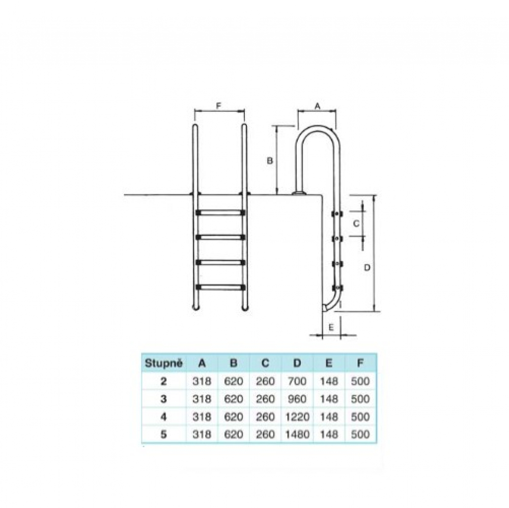 Drabinki przeznaczone są do basenów prywatnych i komercyjnych. Poręcz i stopnie drabinki basenowej wykonane są z polerowanej stali nierdzewnej AISI 316 o średnicy 43 mm. Do czyszczenia materiałów ze stali nierdzewnej należy używać produktów specjalnie do tego przeznaczonych. W żadnym wypadku nie należy stosować produktów zawierających chlor lub składniki kwaśne. Schody wyposażone są w antypoślizgowe bieżniki. ślady stóp. Kotwiczenie dostarczane jest z obudową i zaciskiem do uziemienia.